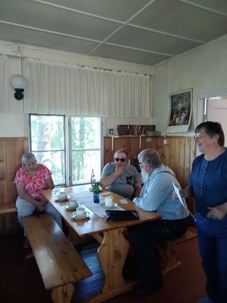 Tämä ensimmäinen Mysteerimatka suuntautui Niinisaareen, Okkolan lomamökeille. Ja lossillakin pääsimme seilaamaan. Matkan teema oli luonto ja metsä sekä rauhoittuminen. Kuulimme Niinisaaren ja Okkolan historiasta, kiersimme luontopolun ja söimme hyvin entiseen kivinavettaan tehdyssä ravintolassa. Tämän jälkeen kisasimme metsätietämyksestä ja tietysti myös arpajaiset pidettiin. Kelikin oli kohtuullinen, ei liian kuuma. Vähän kyllä saimme myös sadetta mutta sitä luonto nyt tarvitsee eikä me sokerista olla.