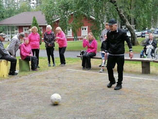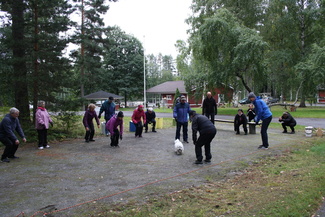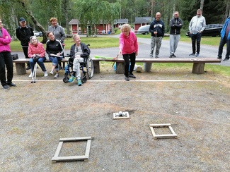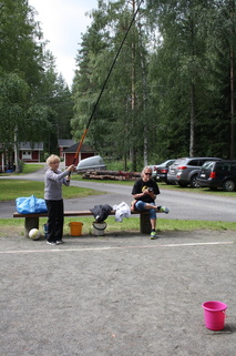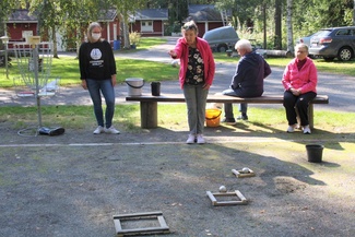 ![]() Teuvon turbokeihäs lensi pisimpään. | ![]() Mirja oli ainut joka sai kaikki kolme kuulaa pienimpään kehään. |