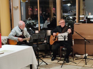 Muusta ohjelmasta - vuodenaikakiertoa noudattelevasta luontukuvaesityksestä ja musiikista vastasivat Martti Solismaa ja Juha Ukkonen. Toki pääsimme myös heidän säestyksellään itsekin laulamaan. Lopuksi vielä testasimme läsnäolijoiden tietämystä yhdistyksen historiasta tietovisalla.