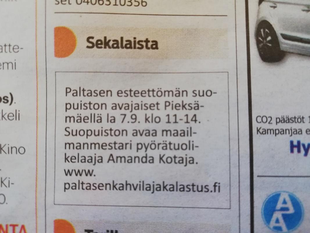 Pieksämäellä avataan lauantaina 7.9.2019 klo 11-14 Paltasen esteetön suopuiston. Suopuistossa on siperianlehtikuusesta valmistettua esteetöntä reittiä noin 650 metriä. Paltasen kahvilalta matkaa…